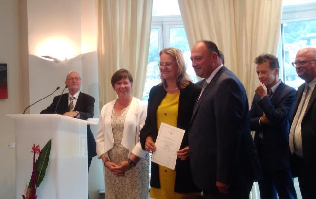 Anne Querinjean, directrice du Musée L, reçoit le prix « Leader Béwé de l’année » lors des Lobby Awards.