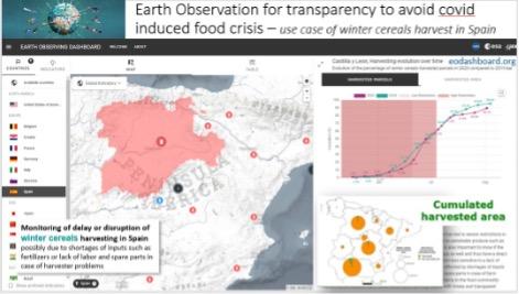 Dès le début du lockdown, la NASA et l’ESA, craignant qu’une crise alimentaire s’ajoute à la crise sanitaire, décide de suivre en temps réel la progression de la récolte du blé en commençant par l’Espagne, premier pays à récolter cette céréale si importante pour le monde. Elles choisissent Sen4CAP opéré par l’UCLouvain pour traiter des quantités inégalées d’observations satellite avec les serveurs du cloud. Une course contre la montre s’engage alors pour identifier tous les champs de blé et en suivre la récolte. Pour vérifier si les récoltes progressent normalement, il faut en plus étudier de la même manière le rythme des récoltes de la saison 2019. Chaque semaine, les chercheurs fournissent le nombre de champs récoltés sur le tableau de bord NASA-ESA Rapid Action. C’est la toute première fois que la récolte d’une culture est suivie en temps réel pour tout un pays parcelle par parcelle. Il a fallu le faire pour deux années d’un coup en un temps record et à distance !