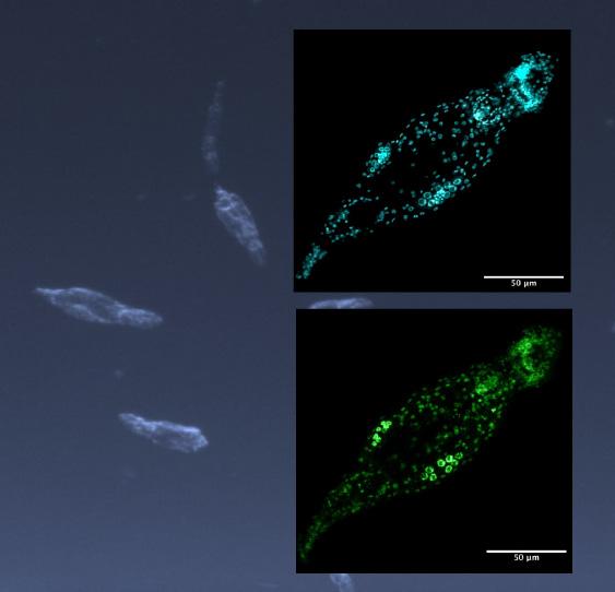 Les rotifères sont de petits animaux aux propriétés exceptionnelles. Ces animaux sont exclusivement des femelles. Depuis des dizaines de millions d’années, ces animaux se perpétuent donc sans sexualité. Ils ont développé des propriétés totalement uniques de réparation de leur patrimoine héréditaire (l’ADN) ce qui les rend résistants à des agressions chimiques ou physiques incroyables. Ils survivent ainsi à des rayonnements radioactifs des centaines, voire des milliers de fois supérieurs aux doses létales pour l’homme. Dans ces conditions, les chromosomes de l’animal sont littéralement pulvérisés en morceaux. Pour la première fois, nos travaux permettent d’entrevoir comment il est capable de recoller les morceaux du puzzle afin de transmettre une copie correcte de son patrimoine génétique à la descendance.